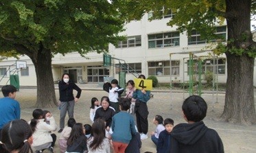 フレンドリータイムでも人気の遊び「四つ角鬼」と同様、校庭に設置した8か所のゴールを使って遊ぶ「八つ角鬼」をしました。