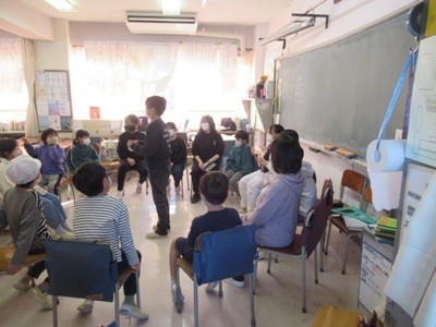 教室や校庭に集合して、鬼ごっこや短なわ、フルーツバスケットなど、班ごとに考えた遊びで年内最後の異学年交流を楽しんでいました。