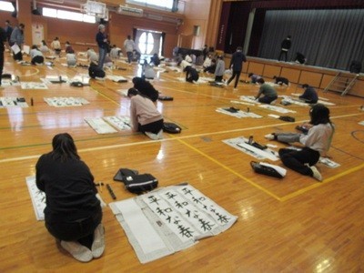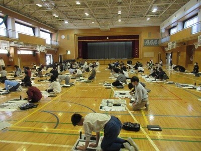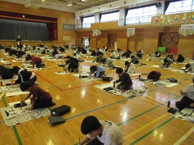 優雅な雅楽のBGMが流れる中、お手本をよく見て