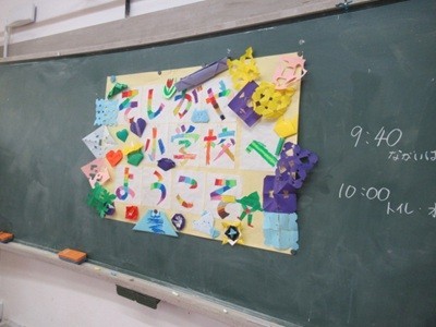 園児の皆さんが1年生の教室に入ると、1年生達は給食の人気メニューや毎日の係活動など学校生活について発表しました。「小学校は楽しいよ」「学校たんけん一緒に行こうね」ちょっぴりお兄さん・お姉さんの顔になって、おもてなし役をがんばっていました。