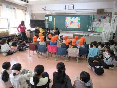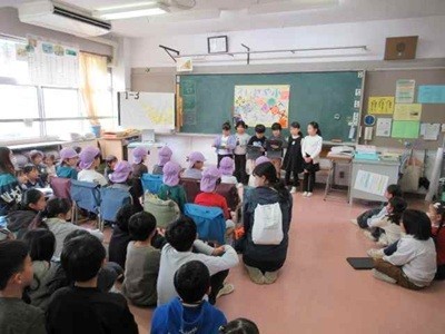 保育園の年長さん達が祖師谷小学校に来ました。