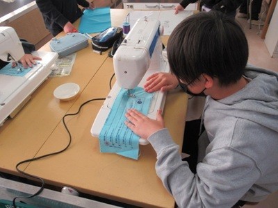 ミシン縫いの学習に取り組んでいます。