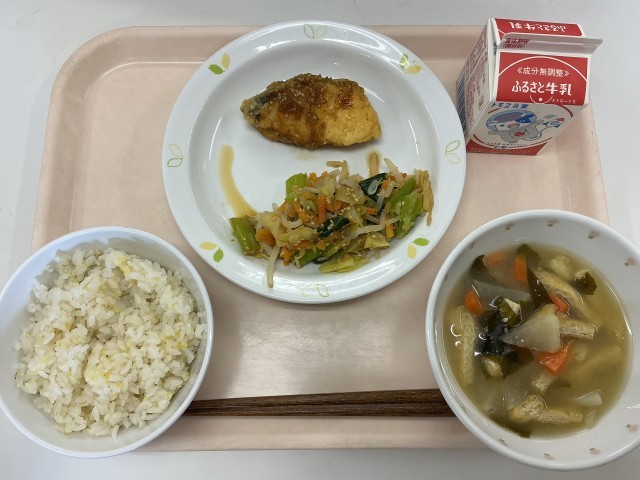 今日のみそ汁は、5年2組の児童が考えました。「ビタミンや無機質を多く含んだものを選びました。また、色とりどりでみんなが食べやすいものを選びました。」とのことでした。素晴らしいアイディアですね!