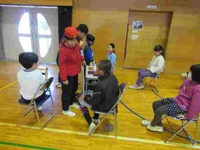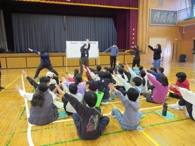 4年生が「英語体験授業」に参加しました。 ネイティブの英語の先生をお招きして、日常生活で使われるフレーズを学びました。 世田谷区内の学校で普段、英語を教えている4人の先生たちの自己紹介から始まり、その後3つのグループに分かれました。 飛行機グループは、客室乗務員風のコスチュームを身に着けた子どもと乗客役の子どもがそれぞれの役になりきって、機内サービスの提供を受ける際に必要な会話に挑戦しました。 スーパーマーケットグループでは、各国の名物料理が書かれたメニュー表を参考に、 料理に必要な材料を店員さんに注文するロールプレイングをしました。 道案内のグループは、世田谷区内の名所が書かれたカードをマットレスにつけて、マットで作られた迷路を進む方向を「Turn right!」などと指示して目的地に向かうゲームをしました。 どのグループからも終始楽しそうな笑い声が聞こえてきました。「言い間違えても大丈夫」という雰囲気の中、楽しみながら英語を話す時間を過ごしました。