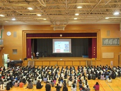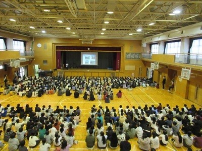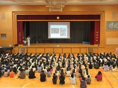 全校児童そろってしっかり聞き入っていました。
