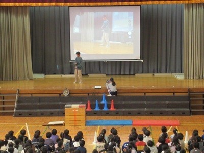 体育館の後方まで披露している内容がしっかり見えるように、集会委員が
