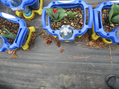 日当たりの良い場所で育ててきたチューリップの成長を観察しました。
