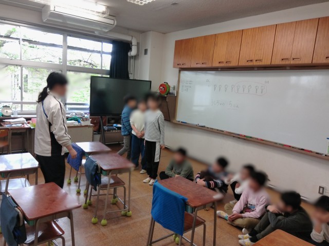 ぽぷら学級5・6年生の算数の学習です。「前から〇番目」や「前から〇人」など、順番の数え方について学びました。実際に自分たちでも整列して、先生の指示に従って立ち、体験を通して理解を深めました。