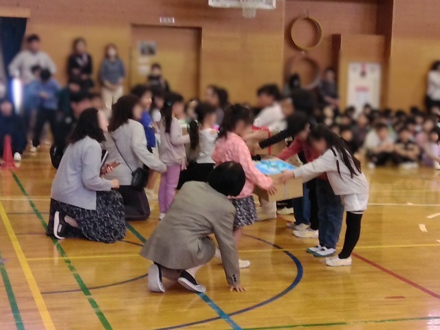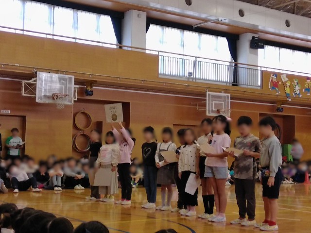 3年生からは給食クイズを交えたお祝いの言葉、2年生からは心を込めて作ったメダルのプレゼント、4年生からは祖師谷小にまつわる〇✖クイズをしました。1年生からも歌の発表があり、最後は全員で校歌を歌いました。とても温かいすてきな会となりました!
