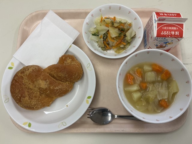 今日は祖師谷小学校で人気の、きなこ揚げパンを作りました。調理師さんがプロの技で、カラッと揚げてくれました。外側は少しカリッとしていて、中はふんわりしています。3月はシュガー味を出しましたが、今回はきなこ味です。他にもココア味や抹茶味があります。皆さんが好きなのは何味ですか?