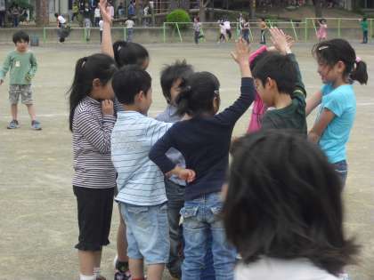 1.2年生混合の7〜8人のグループを作って学校のいろいろな教室を見学します。
