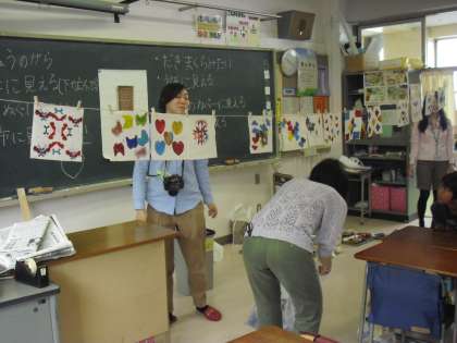 前日に教室にて柚木氏の作品を見て、布の作品作りを行いました。