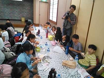 昼ご飯はだいや川公園で食べる予定でしたが、あいにくの天気なので、一足先に、宿舎にはいって、おまちかねのお弁当です。雨でも、霧でもお弁当は、格別です。
