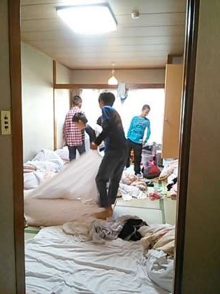 6時起床のこどもたち、協力してふとんをたたんだり、保健カードを記入したり、てきぱきやっています。