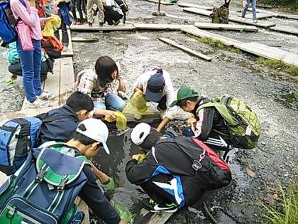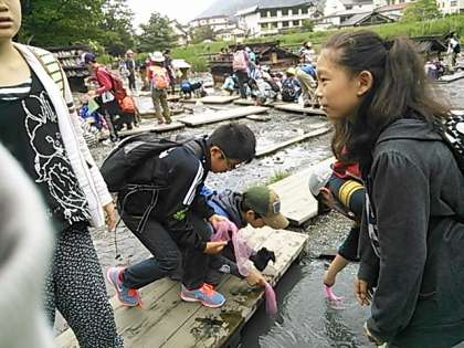湯元、源泉十円玉をつけると、、、あらま、真っ黒。大実験でした。「錆びたようになった。」「黒くなりました。」「銅だからかな」(二組男子)理科の勉強にもなった子もいました。