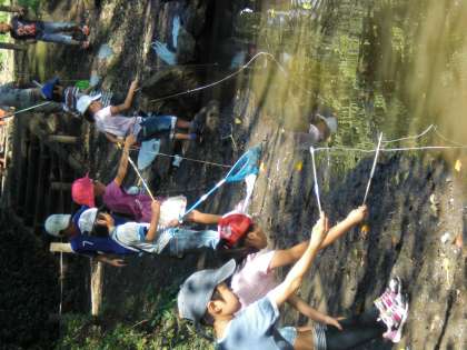 さおを引っ張り上げる子