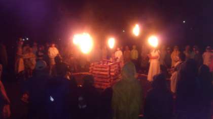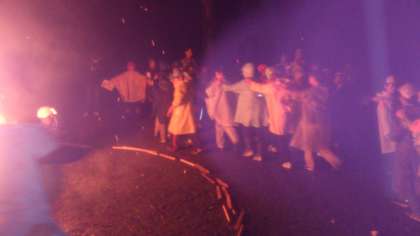 小雨の中、時間を早めてキャンプファイアを行いました。