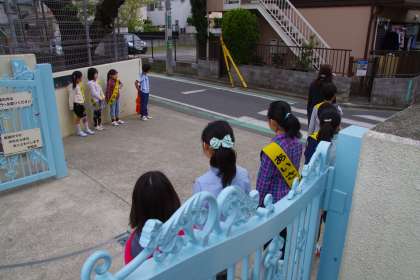 校門の前でもあいさつをしていますので、ぜひ子どもたちとあいさつを交わしていただければと思います。