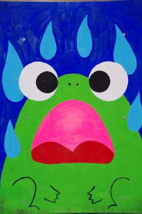祖師谷小学校の校庭が雨で利用できない場合、唯一校庭に出る許可が出ているのが「かえる君」です。