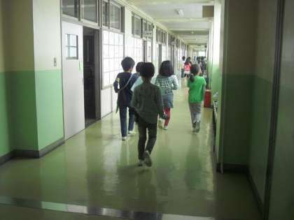 各教室の説明をしたり、特別教室への入り方や廊下の歩き方などを教えて