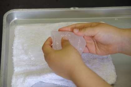 おやじの会の中川さんからいただいた「南極の氷」の展示が終わりました。