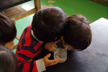 南極の氷を水に入れると、プチプチと空気の泡が出てきます。