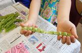 5月9日(金)の1校時、グリーンピースのさやむき体験をしました。