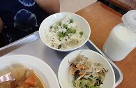 そして待ちに待った給食。「おいしい!」「甘いね!」と笑顔。おかわりもして、