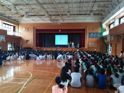 今日は図書集会です。図書委員がおすすめの本を紹介しています。本をゆっくり読んで創造力豊かにしてほしいですね。