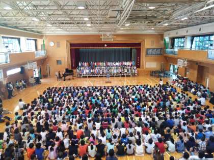 そしがや音楽会が始まりました。1年生の演奏です。可愛らしい歌声が響いています。
