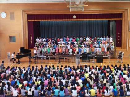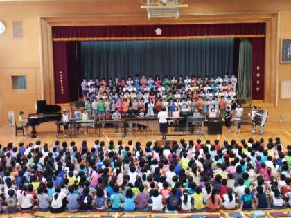 4年生の演奏です。丁寧な演奏や歌声が聞こえています。