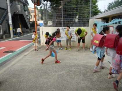 朝、正門に立ち「あいさつ運動」をしています。