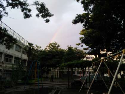 強い夕立の後に、ふと校庭を眺めてみると…。