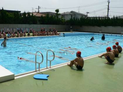 夏休みに入って連日猛暑が続いており、たくさんの子どもたちが夏季水泳に元気に参加しています。泳力や体力の向上し、また運動不足の解消をめざし、できるだけたくさんの夏季水泳に参加してほしいと思います。夏休みはまだ始まったばかりです。これからも頑張りましょう。水泳道具の忘れ物が目立ちます。タオルや水着などちゃんと持ち帰ってくださいね。
