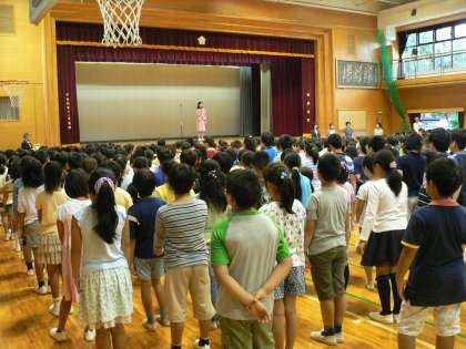 今日から2学期が始まりました。朝校門に立っていると、雨にもかかわらず、子どもたちは皆元気いっぱいに登校してきました。始業式の後、ゴールデンカッパ賞(夏季水泳皆勤賞)の表彰式がありました。なんと今年は30名近い児童が夏休みの水泳指導に一度も休まず参加しています。素晴らしいことです。泳力も体力も十分身につけたことでしょう。来年の夏も頑張ってほしいと思います。
