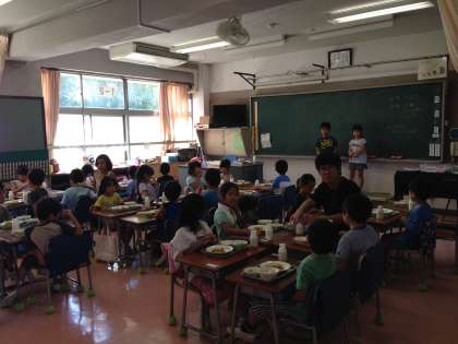 今日から2学期の給食が始まりました。今日は「ごまご飯」や「五目うま煮」などの和食メニューでした。1学期同様に給食の準備を進め、子どもたちは皆、給食をおいしくいただきました。児童の皆さん、今学期も好き嫌いなく残さずモリモリ食べましょう。給食室の皆さん、栄養士の先生、今学期もよろしくお願いします。