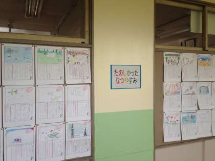 夏休みの宿題で作ったり調べたりした自由研究の作品や絵日記などの作品が、各教室前に展示され始めました。自由研究では、理科や社会に関わる調べ物や手芸・工作、旅行記などの作品が飾られています。どの作品も力作ばかりです。また、絵日記には楽しかった夏の思い出がたっぷりと記されています。来週の保護者会で学校にご来校の折、ぜひ子どもたちの力作をご覧ください。よろしくお願いします。