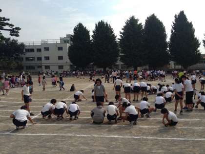 運動会がだんだん近づいてきました。昨日の児童朝会後に全校で校庭の石拾いを行いました。校庭に落ちている石や木片、ゴミなどを皆で拾い、運動会に向けて校庭をきれいにしました。素足で演技をする学年もあります。どの学年も子どもたちも一生懸命石を拾い、先生が準備したバケツに入れていました。皆の頑張りで校庭がきれいになりました。