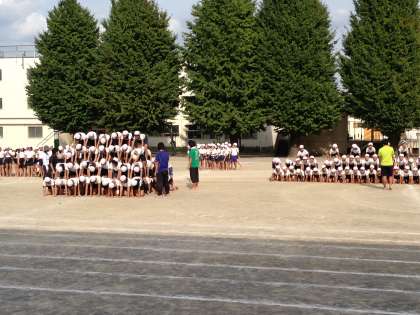 5,6先生は毎年恒例の組体操を運動会で披露します。素敵な音楽に合わせて、華麗な技や力強い技を作り上げていきます。少々ハードな練習を続けてきましたが、子どもたちはそれを乗り越え、頑張ってきました。すべての技が完成に近づいています。明日の本番を期待してください。