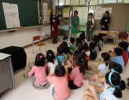 日本や外国の話の語り聞かせや、組み木をつかったお話、絵本の読み聞かせなどに、わくわくドキドキしながら真剣に聴き入っていた2年生。途中、手遊びや歌もあって、とても楽しい45分間でした。