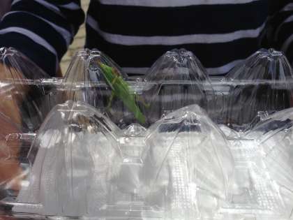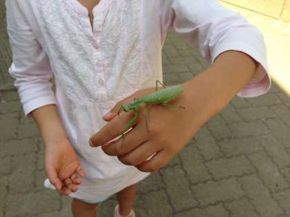 先日、休み時間に校庭に立っていると、2年生の女の子が「校庭で捕まえた」とカマキリを見せてくれました。また、今日は別の子が「バッタを捕まえた」と見せてくれました。祖師谷小の校庭は木々や草花など緑が豊かで、虫もたくさんいます。虫と友達になれるチャンスがいっぱいあります。また、台風の影響か、ドングリもたくさん落ちています。1年生の子どもたちはドングリ拾いに夢中になっていました。
