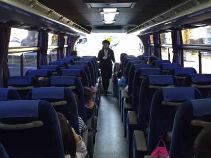 朝、学校に来た時には少し遠足気分でしたが…校長先生のお話を聞いて出発し、バスに乗る頃にはもうすっかり気持ちが切り替わって、顔がきりりとしています。