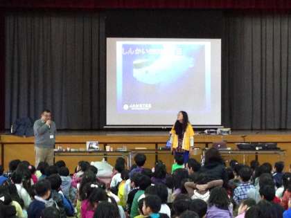 今日は1,2年生の授業に素敵なゲストティーチャーがいらしてくださいました。1年生の保護者で海洋研究の専門家の方です。仕事のお仲間も一緒に来てくださいました。前半は「くじら号の地球大ぼうけん」の読み聞かせなどをしてくださり、後半は「しんかい6500」に関する話をしてくださいました。ご自身の深海探査の経験も交えて、海の不思議や深海生物の不思議について楽しく語り聞かせてくださいました。子どもたちも目を輝かせて聞いていました。我々大人にも興味深いお話でした。講師の皆さん、お忙しい中授業をしてくださり、ありがとうございました。