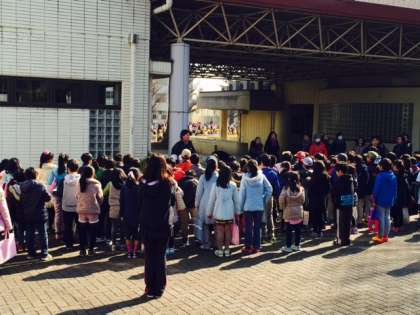 今日は総合の学習で、地域の危険なところ、安全なところを探しに出かけます。見つけたところを写真に撮り、地域安全マップを作成します。