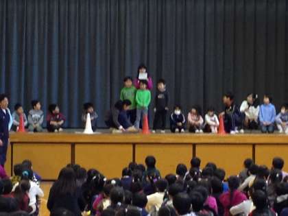 今日の児童集会は、集会委員会主催のゲーム集会です。「ボール送り・伝言げーむ」を学級対抗で楽しく行いました。集会委員は朝早くから準備を進め、本番の司会や進行なども頑張っていました。楽しいゲームで、朝から大いに盛り上がりました。集会委員会の皆さん、ありがとうございました。