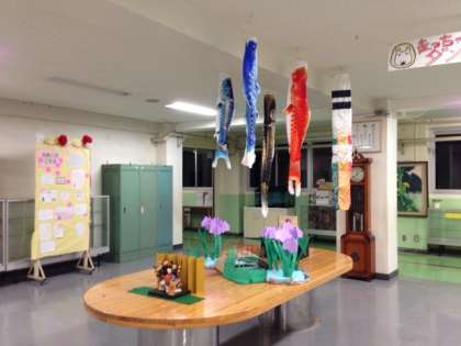 5月になりました。爽やかな青空のもとで子どもたちは元気一杯に過ごしています。今日は、3年生は遠足に出かけました。さて、装飾ボランティアの皆さんが、今月も素敵なディスプレイを施してくださいました。今月は端午の節句の装飾です。ボランティアの皆さん、いつも素敵な装飾をありがとうございます。