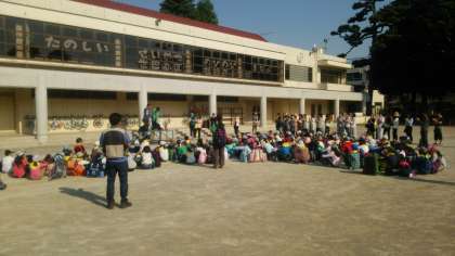 晴れ渡る晴天の下、川場移動教室の出発式が始まりました。
