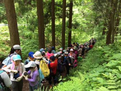 みんなで声かけ合いながら、山の中腹まで登ってきました!
