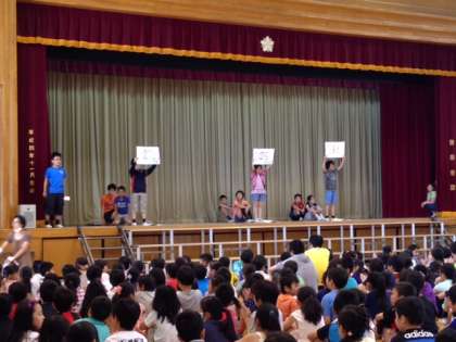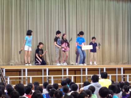 今日の児童集会は、保健給食委員会担当の集会です。今日6月4日は虫歯の日です。今日の集会は「虫歯にならない」をテーマに寸劇やクイズで楽しく学びました。歯の健康を保つことは、とても大切なことです。ご家庭でも話題にしていただき、皆で歯磨きなどに取り組んでいただけたら幸いです。また、歯科健診が全ての学年で終わりました。虫歯が見つかった場合には、早く治しましょう。