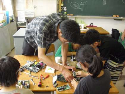 今日からサマー学びピアが始まりました。保護者や地域の方などボランティアの皆さんが講師となり、子どもたちに楽しい体験をさせてくださいます。今日も午前午後とたくさんの講座が開かれ、たくさんの子どもたちが参加しました。スポーツ系、手芸や工作系、学習系など様々な講座が開かれ、子どもたちも熱心に取り組んでいました。明日24日と来週27日も行われます。申し込んだ人は忘れずに参加してください。写真は、マジック教室、パソコン分解、くしゃくしゃパペット(作品)の講座の様子です。